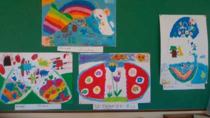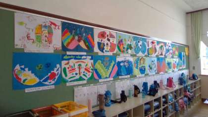 子どもたちの作品で,教室がぐっと明るい雰囲気になりました。