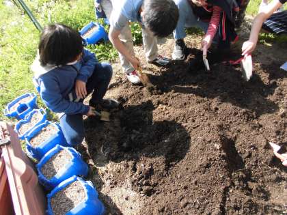 スコップを使い,柔らかい土にすることができるように頑張りました。