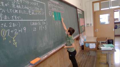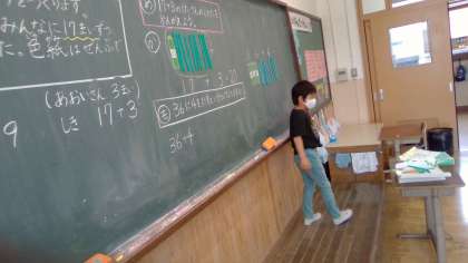 数え棒を使って,17+3という答えが何十になる計算の仕方を考えました。