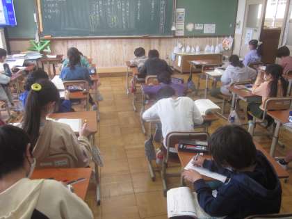 教科書にある書き方を参考にする子,自分なりに書き方を工夫する子などさまざまですが,物語についてや自分の考えを集中して書くことができました。