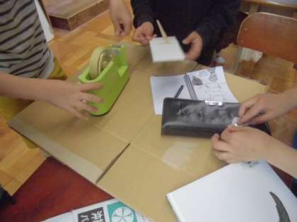 クイズ係はクイズを調べ,工作係は段ボールを使って工作をしていました。マジック係は技を少し見せてくれました。
