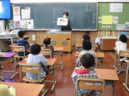 給食指導で,栄養教諭の梅原先生が来られて,魚の食べ方を教えていただきました。実際にはしを動かしながら,魚の身から骨を取る練習をしました。「どんなお魚が給食に出るのかな。」「きれいに骨がとれるかな。」と,わくわくした様子でした。給食で魚が出る日が楽しみですね。