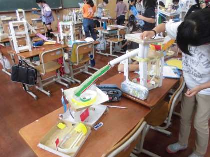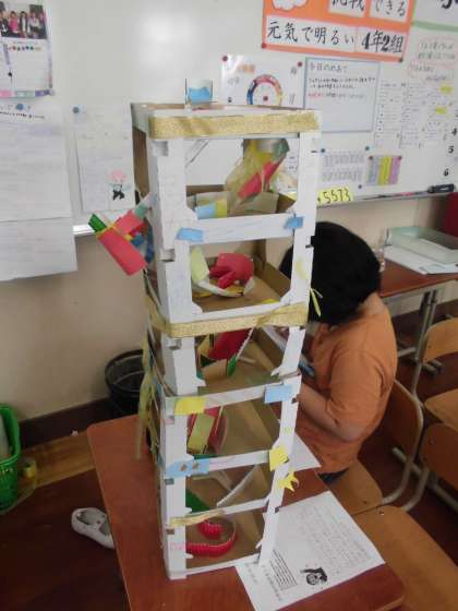 本日,コロコロガーレの鑑賞を行いました。友達の作品に触れながら,ビー玉が転がる仕組みに夢中になって楽しんでいました。 友達と一緒に合同作品にしたり,個人でモクモクとつくっていたりとそれぞれに面白さを感じました。