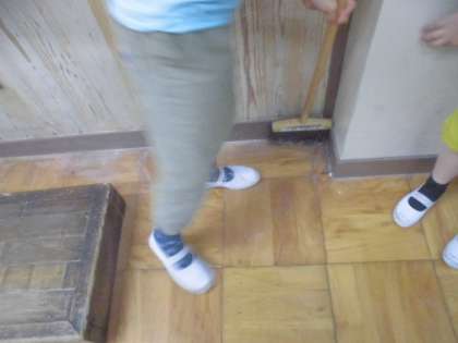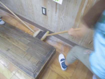 今日はなんと,黒板の下の踏み台をみんなで動かし,裏側をほうきで掃いてくれました。