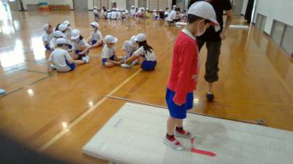 今日は,体育館で体力テスト(立ち幅跳び)をしました。