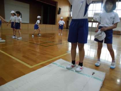 反復横跳びでは,どうやったら回数が増えるか,立ち幅跳びでは,どうやったら遠くに飛べるかを考えて取り組むことができました。