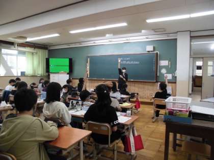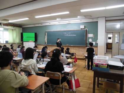 今日の家庭科は,交流学級の授業で初めて手芸セットについて学習しました。自ら積極的に手を挙げて発表していました。