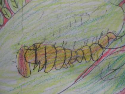 今日は,たまごから生まれた幼虫の様子を絵と言葉で表しました。