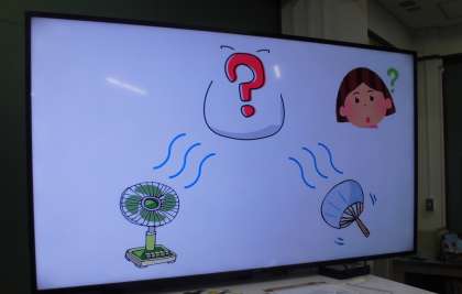 送風機やうちわで風を送ってどんなものを飛ばすことができるか,どんなものを浮かせることができるか考えました。