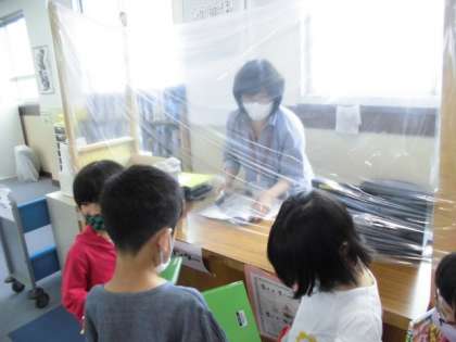図書館で初めて本を借りました。「お願いします。」「ありがとうございます。」と,しっかりあいさつをして借りている子もいました。「家で読むのが楽しみだな!」とわくわくした様子でした。借りられる冊数は一人1冊で,借りられる期間は1週間です。