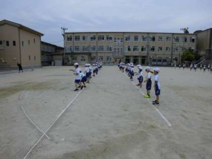 今日は,初めて運動場でダンスの練習をしました。立ち位置や動き方を確認しました。「運動場で踊るのは,ドキドキするなぁ。」と,少し,緊張した面持ちでした。