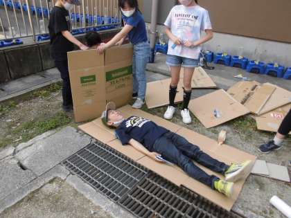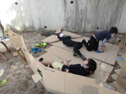 材料はシンプルに段ボールとガムテープでつくりました。