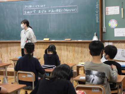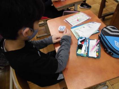 先週,家庭科の学習で玉結びと玉どめの練習をしました。裁縫が得意なだけあって,とても上手にできていました。