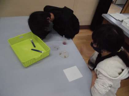 ヨウ素液を使って,デンプンの反応を見ました。