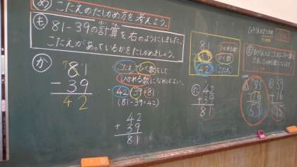 今日は,ひき算のひっ算のたしかめ方について考えました。