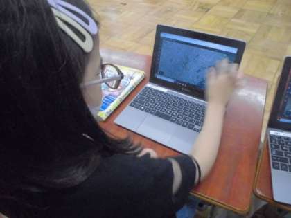 行ったことがないところを自由に調べて,楽しく雨の日の休み時間を過ごせたようです。