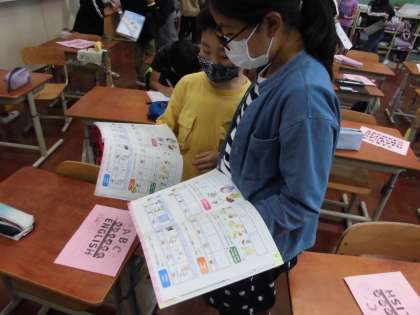 今日は,自分たちの予定を表に書きこみ,相手に英語で尋ね合って,曜日を英語でいうという活動をしました。