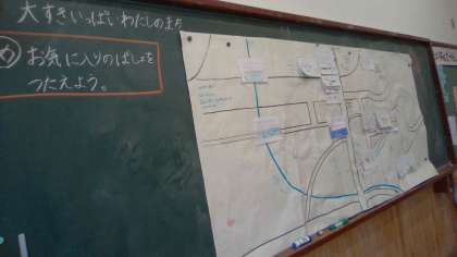 今日の生活科では校区の地図にお気に入りの場所を貼りつけました。