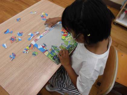 様々なパズルを使って,集中力と右脳のトレーニングをしています。