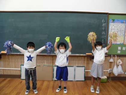昨日今日と,北白川スポーツの日に向けて素敵アイテムをゲットした子ども達は大喜びしていました。1年生はカラー軍手,2年生はキラキラのポンポンです。