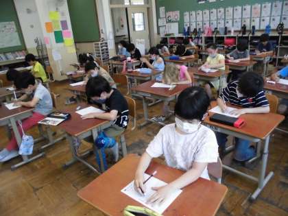 漢字は書くことはもちろんですが,文字が抜けていないかなど見直しをすること,そして,文字を丁寧に書くことを意識して取り組んでいます。クラス全体の合計点は,テストを重ねるにしたがってアップしてきています。
