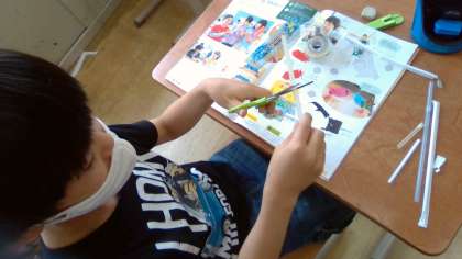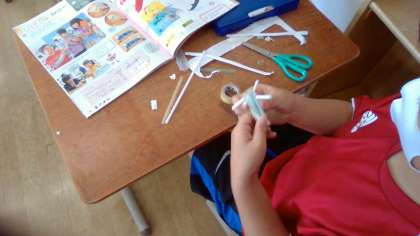 今日の図工はパタパタストローの仕組みを作りました。