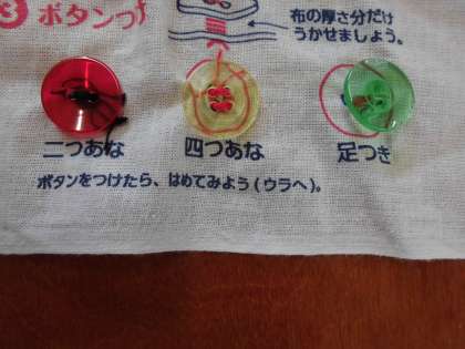 今日の家庭科では,ボタン付けをしました。これまでにも,「なみぬい」「半返しぬい」「本返しぬい」を頑張っていました。