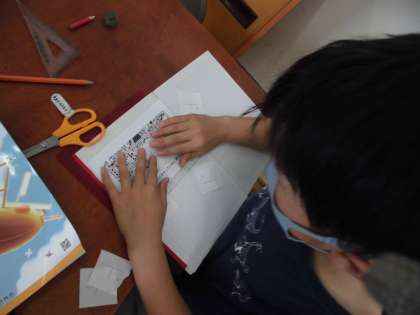 教科書の絵を使って,実際に垂直の関係にある線を探しました。