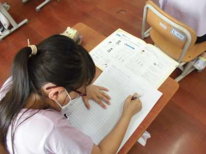 4年生では,画数の多い難しい漢字がたくさんでてくるので,書き順を確認し,字形を整えて書くことを意識しました。