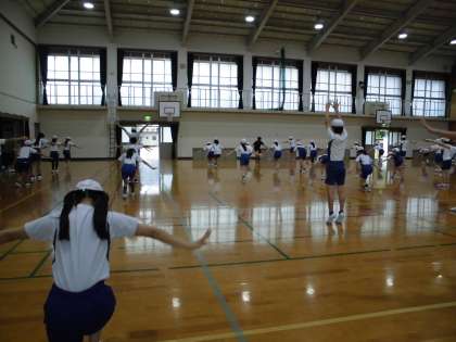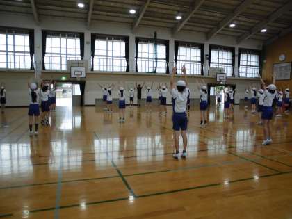 今日は,体育館で集団行動の練習をしました。