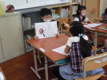 友達とクイズを出し合いました。「これは,なんのしっぽでしょう。」「えー,カンガルーかな?」「正解です!」などと,友達とのやりとりを楽しんで,本で調べて分かったことを伝え合っていました。