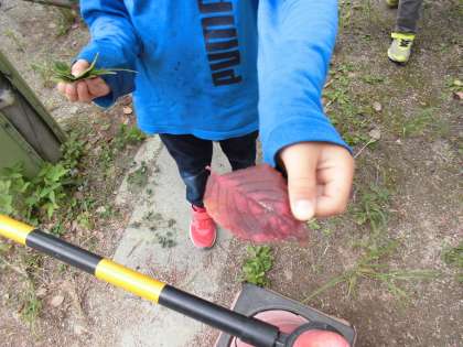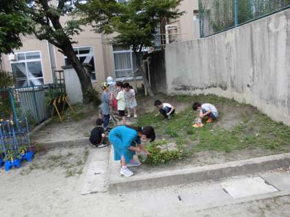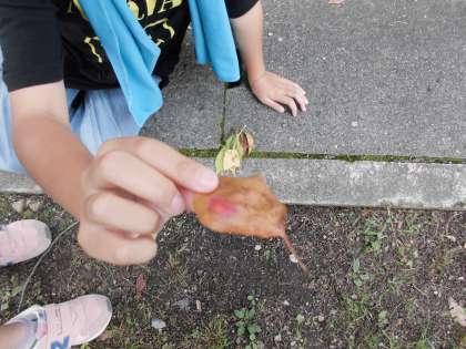 今日は,教室を飛び出し,校庭にある自然の形・色を探しにいきました。