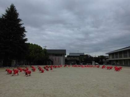 今日の予定表の裏側に,80メートル走の走順や,ソーラン節で踊る位置を載せていますので,ご確認ください。よろしくお願い致します。