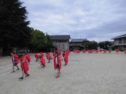 今日の6時間目に学年体育を行い,北白川スポーツの日の通し練習をしました。