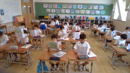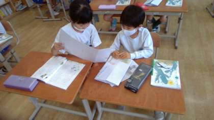 今日はリーフレットを友だちと読み合いました。