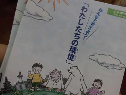京都市が発行している「みんなで考えよう!わたしたちの環境」という冊子も使って,これから調べていきます。