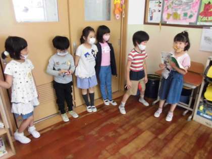 「おおきなかぶ」では,学習の最後に,グループでげきを発表します。誰がどの役割をするか相談したり,音読練習をしたり,動きをつけたりして,グループでなかよく練習しています。
