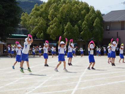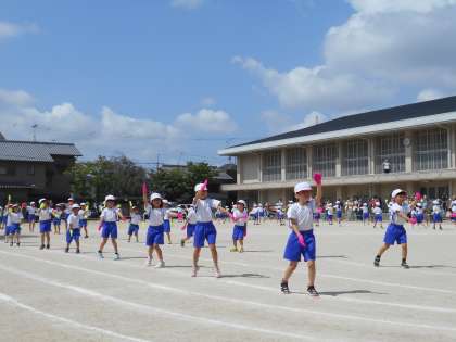 本日は,お忙しい中,お越しいただきありがとうございました。初めての北白川スポーツの日で,子どもたちは始まるまでは少し緊張した面持ちでしたが,終わった後の感想を聞くと,「今日はとっても楽しかった。」「今日は百点満点だった。」などと,きらきらした笑顔を見せていました。お家でも,お子さんの頑張りをほめてあげてください。