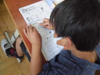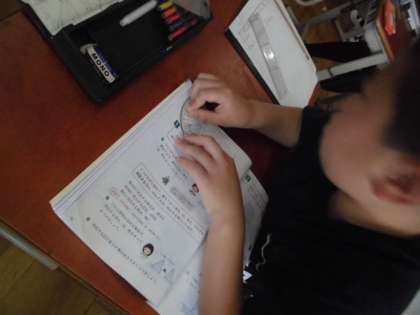 合同な三角形をかくために,どこの長さや角度を調べるとよいのかを考えながら,必要な情報を調べています。分度器やコンパスの使い方についても,再度確認しました。