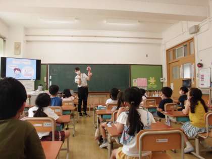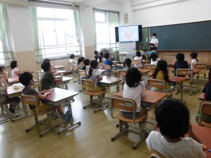 養護教諭の近森先生から,歯の磨き方を教わりました。