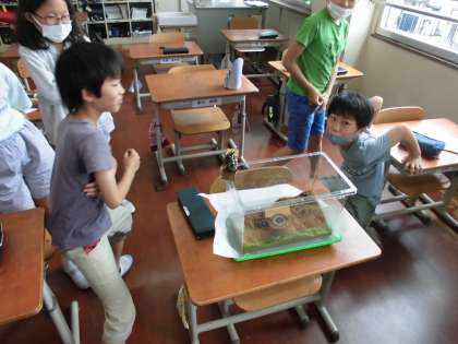 教室にカブトムシを置いているのですが,虫が好きな子どもたちは大喜びです。