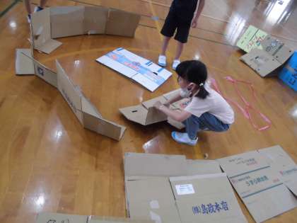 昨日は段ボールを使って,グループで製作活動をしました。