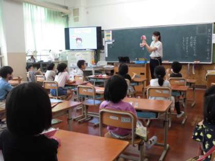保健の先生から,歯磨き指導を受けました。6才臼歯というとても大事な歯が生えるということを知り,歯磨きの大切さを改めて感じているようでした。今回は,歯ブラシを持って,磨く真似をしましたが,「あぁ,本当に磨きたくなるよ。」「忘れずにお家でやってみよう。」と,歯磨きがしたくてたまらなくなった様子でした。