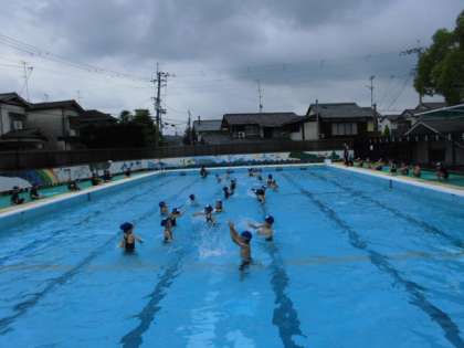 水位が上がって初めての水遊びでした。雨が続いて,なかなか入れなかったので,子どもたちは大喜びでした。かにさんブクブクをして鼻から息をはく練習や,顔つけチャレンジをしたりしました。水中じゃんけんも盛り上がっていました。