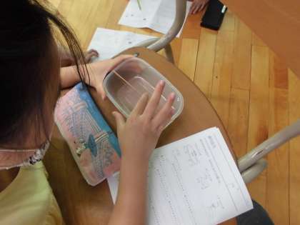 「たいこを強くたたくと,ビーズがとびあがった。」