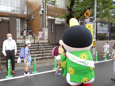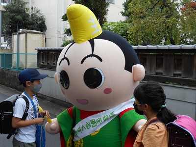 今日,「社会を明るくする運動」のマスコットキャラクターである社明(しゃめい)くんが北白川小学校に来てくれました!突然の登場に,子どもたちもびっくりしていました。