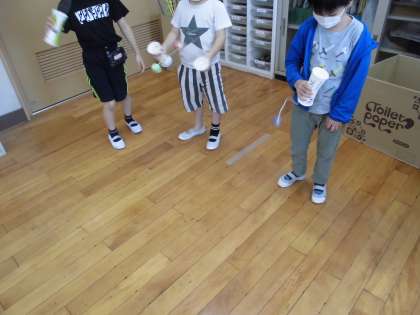 実際にけん玉をしてみましたが,みんな上手に玉を入れることができていました。