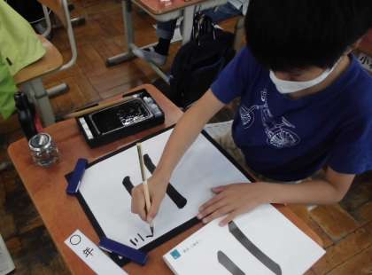 習字・・・自分の好きな漢字の書き方を調べて,墨でその漢字を書く。