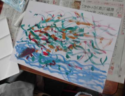 図画工作・・・絵の具の色の混ぜ方や筆の動かし方を生かして思い出を絵に表す。