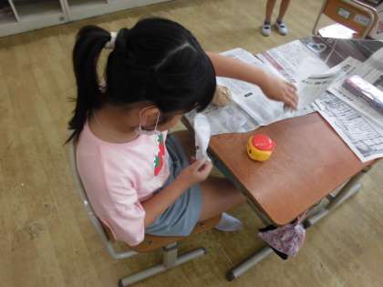 図画工作では新聞紙と仲良くなる学習をしました。